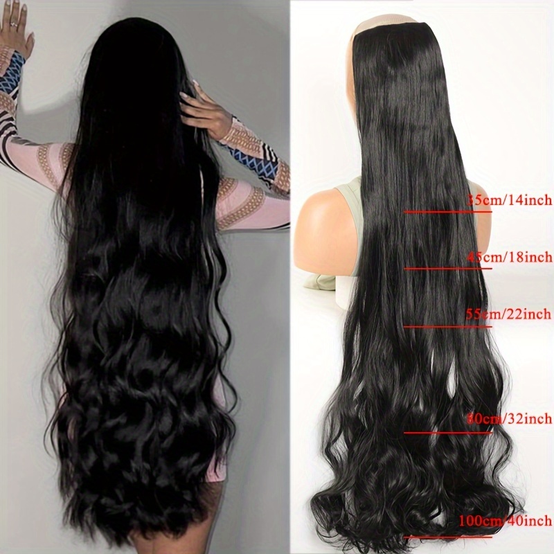 TEMU 여성용 40인치 긴 웨이브 클립인 헤어 익스텐션, 자연스러운 합성 열에 강한 섬유, 보이지 않는 5 BB 클립, 다양한 헤어스타일에 완벽, 자연스러운 룩 헤어피스, 열에 강한 익스텐션, 헤어 클립