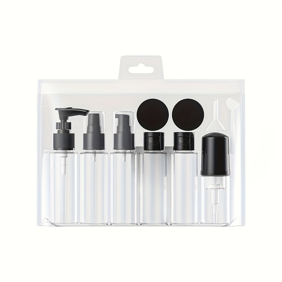 TEMU 11개 세트 PET 블랙 앤 화이트 여행용 휴대용 분할 병 샴푸, 목욕 젤, 토너, 로션 및 에센스 분할 세트