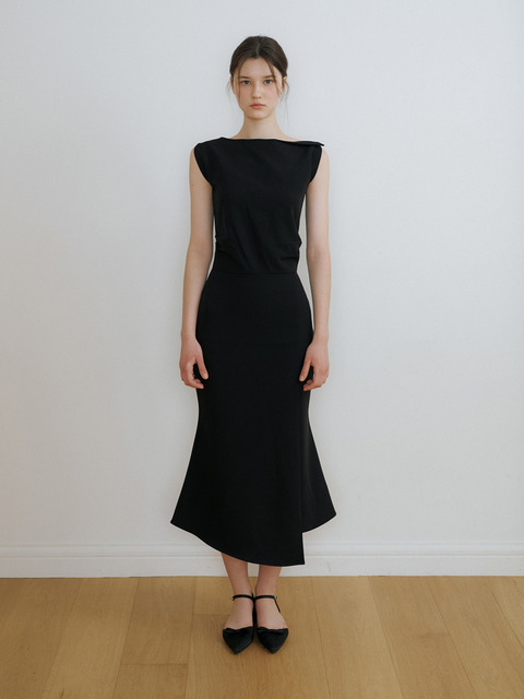 [리올그] 원 숄더 머메이드 원피스 블랙