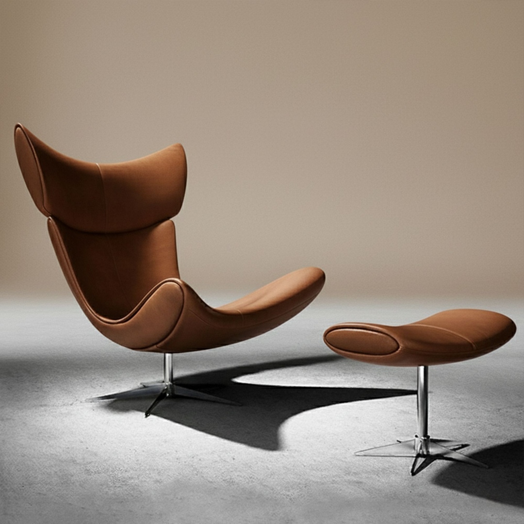 북유럽 이몰라 라운지 체어 가죽 1인용 무중력 리클라이너 1인소파 풋스툴 안락의자