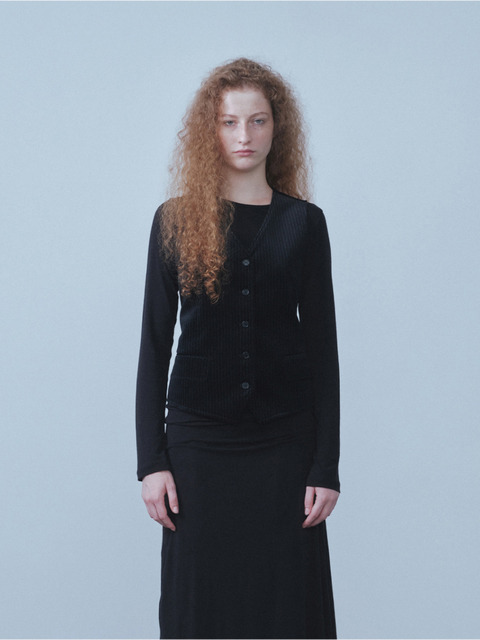 [리포스] 벨벳 스트라이프 베스트 (블랙)