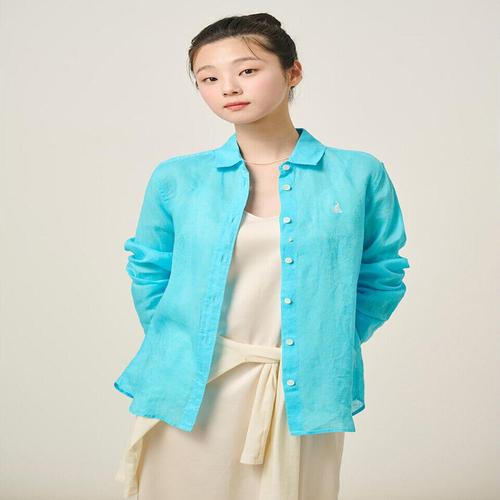 [빈폴레이디스][Essential] 리넨 솔리드 레귤러핏 셔츠 스카이블루 (BF5364E01Q) .