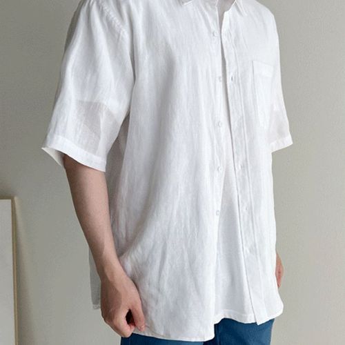 르위 30수 린넨 하프 오버핏 반팔 셔츠 남녀공용