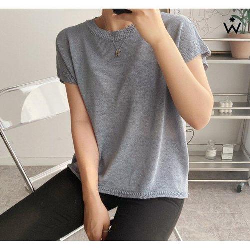 [위시드]린넨 비스코스 드롭 페미닌 반팔 니트 (WIBANT083)