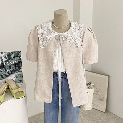 허니제이 / 트레븐 린넨혼방 투버튼 퍼프소매 반팔 자켓(2color)