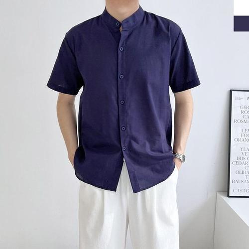 올멋 고퀄리티 린넨 셔츠 아이스 린넨 카라 반팔 셔츠