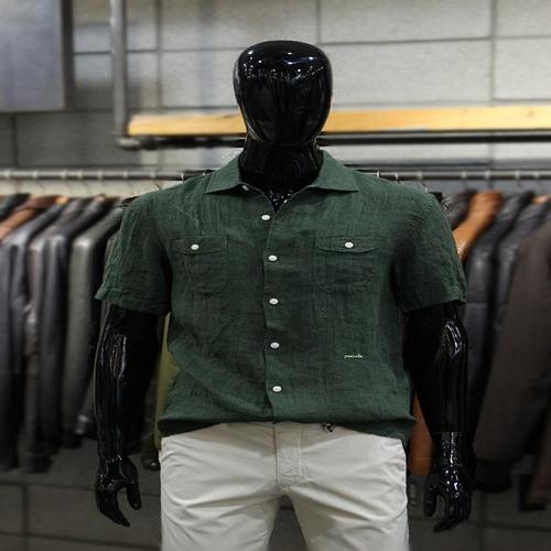 [빠니깔레][빠니깔레] 카키그린 투포켓 반팔린넨셔츠 d-qcsh15ka (P003612729)
