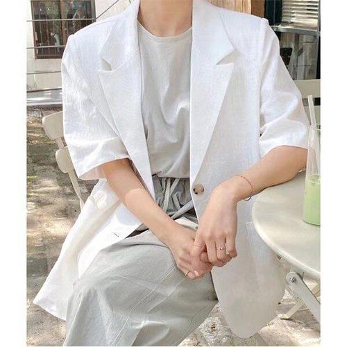 [위시드]베이직 린넨 투 버튼 반팔 자켓 (WIBBJK017)
