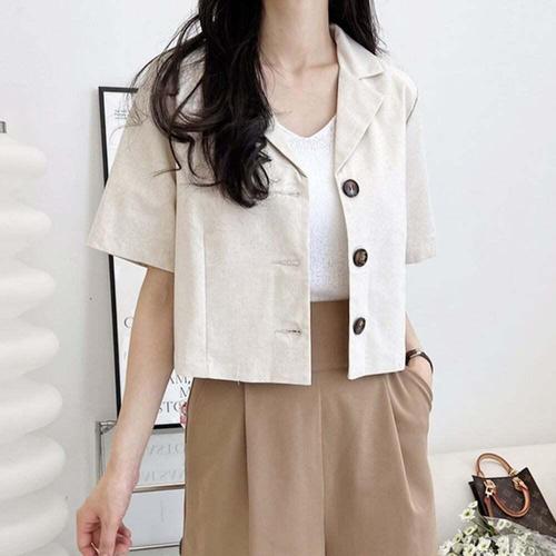 [SBD] 출근룩 여름 숏 자켓 크롭 여성 데일리 상의 반팔 린넨