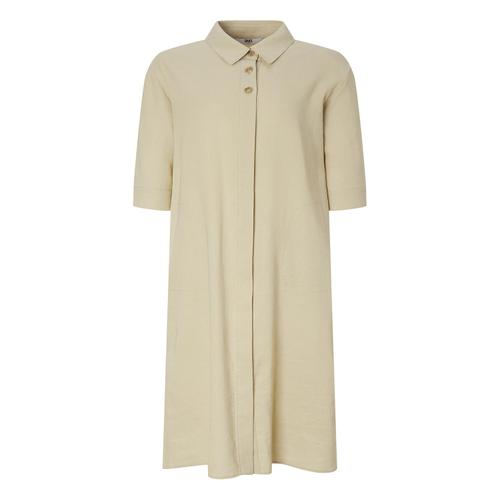 베이지 포켓배색 린넨혼방 반팔 셔츠형 원피스(청량감소재) (DLDR5C715I2)