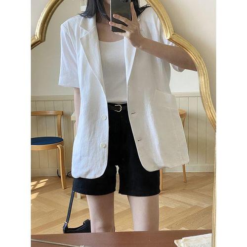 여성 여자자켓 여름 린넨 루즈핏 칠부 자켓 원버튼 정장 빈티지 재킷 KS5