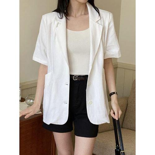 [샵앤]국산 여성 정장 카라넥 린넨 100 반팔 하프 자켓 SML-WJK-4438-화이트