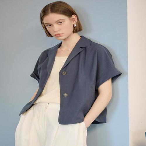 [D-SET UP] 네이비 멜란지 스티치 포인트 린넨혼방 5부소매 자켓 (DLJA5BI41N2)