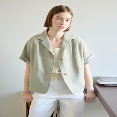 [옷자락]여자 스퀘어넥 린넨 크롭 셋업 반팔 자켓 밴딩 팬츠 세트