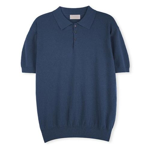 [리빌모아]남자 여름 셀럽버튼 카라 가디건 티셔츠 린넨 반팔 니트 SG-KNH-Q010-네이비