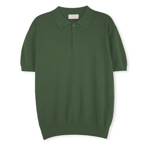 [리빌모아]남자 여름 셀럽버튼 카라 가디건 티셔츠 린넨 반팔 니트 SG-KNH-Q010-그린