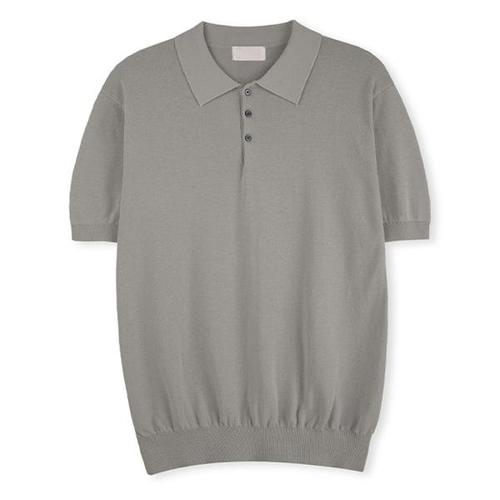 [리빌모아]남자 여름 셀럽버튼 카라 가디건 티셔츠 린넨 반팔 니트 SG-KNH-Q010-그레이