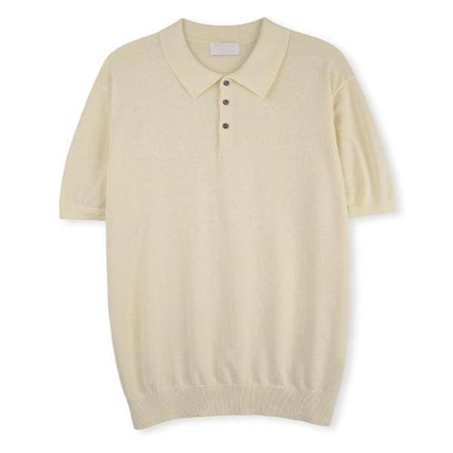 [리빌모아]남자 여름 셀럽버튼 카라 가디건 티셔츠 린넨 반팔 니트 SG-KNH-Q010-크림