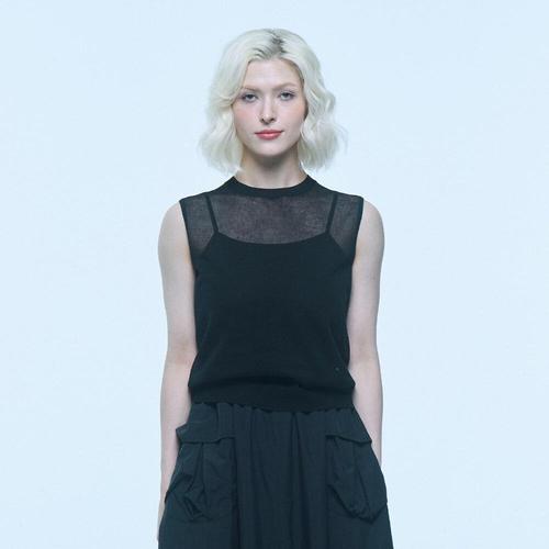 [유닛]린넨 블렌디드 페미닌 슬리브리스 (UFKKSN243N-BLACK)