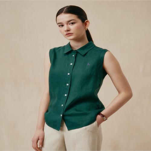 헤지스 여성 린넨 슬리브리스 다크그린 (HSSH5B406E3)