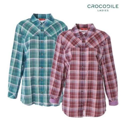 [크로커다일레이디]크로커다일레이디 (CLDFBL201) 코튼 린넨 혼방 풀오픈 체크 셔츠_GN