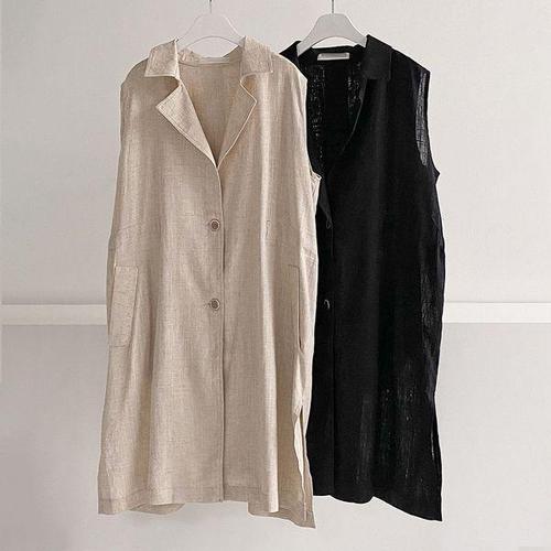 [삐까삐까]오버핏 린넨 카라넥 단추 오픈 자켓 조끼 여름 롱 베스트