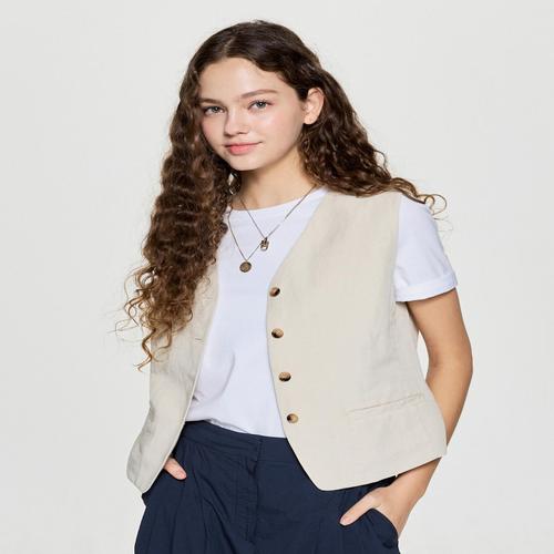 여성 썸머 아우터 원버튼 베스트 봄 골지 린넨 WFLMY9P