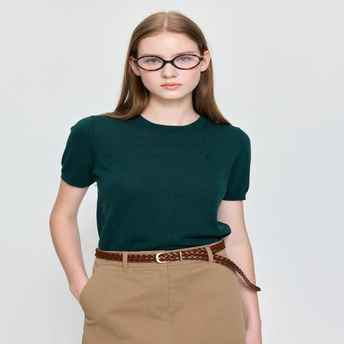 헤지스 여성 [마지막수량/추가할인][SET-UP] 린넨 블렌드 라운드넥 반팔 풀오버 다크그린 (HSSW5C604E3)
