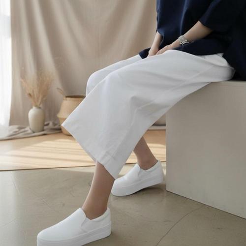 옷자락 / 여자 클래식 무지컬러 린넨 코튼 밴딩 와이드 팬츠