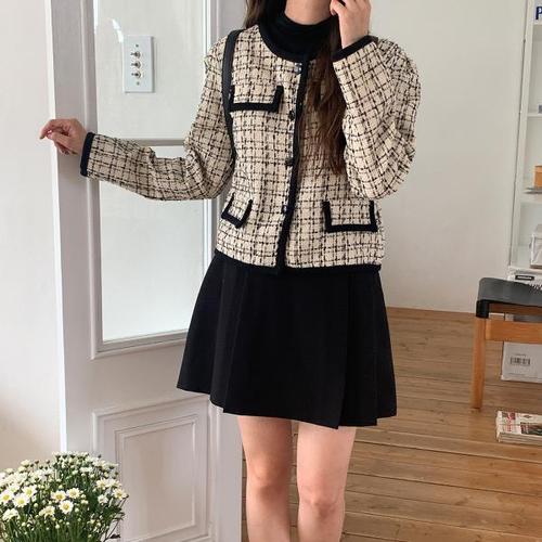 [린다샵]카너여 캐주얼 배색 트위드 자켓