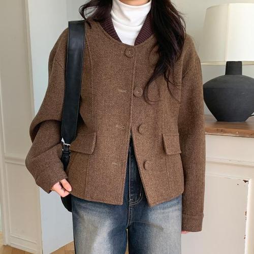 [린다샵]스네제 헤링본 왕단추 포켓 미니 자켓