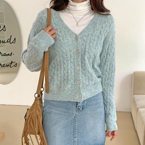 [린다샵]헤세르 보카시 울 꽈배기 가디건