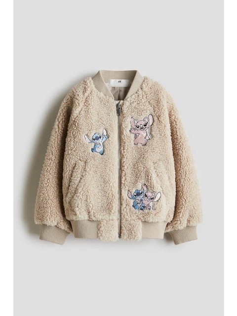 [에이치엔엠] 아플리케 테디 보머 재킷 라이트 베이지/릴로 & 스티치 1236921005