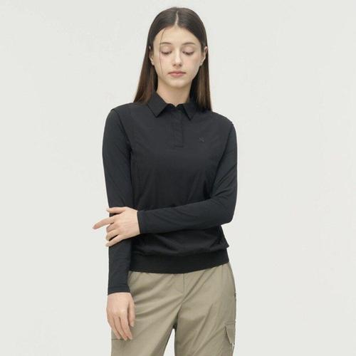 [링스골프]여성 우븐소재 소매냉감 카라 티셔츠 L21F1TO153_BK_DG
