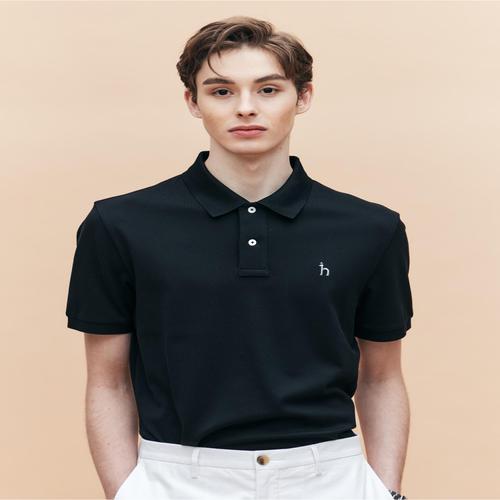 헤지스 남성 [시즌오프][아이코닉][링클프리] 블랙 반팔 피케 티셔츠 (HZTS5B403BK)