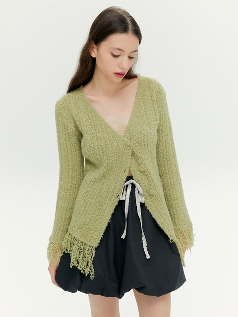 [마가린 핑거스] [리퍼브]FRINGE KNIT CARDIGAN (OLIVE)