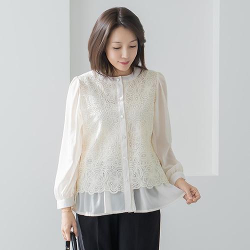 엄마옷 마담4060 크림레이스블라우스-QBL2601015-