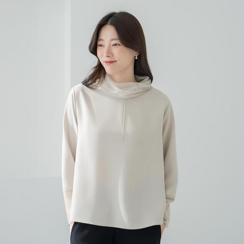 엄마옷 마담4060 핀턱반하이넥블라우스-QBL2601008-