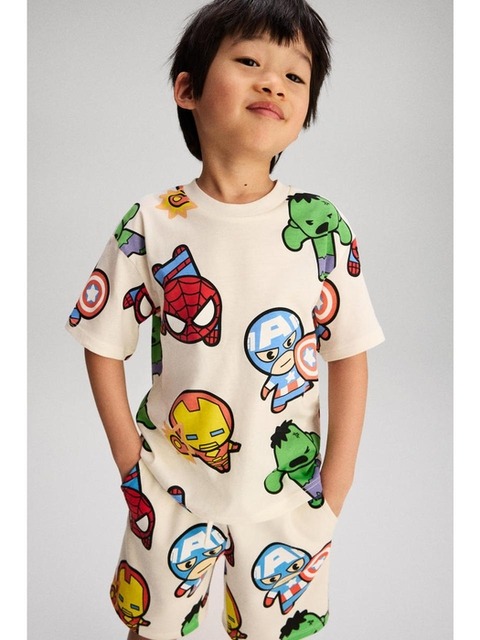 [에이치엔엠] 프린트 코튼 티셔츠 머스타드 옐로/마블 코믹스 1117462040