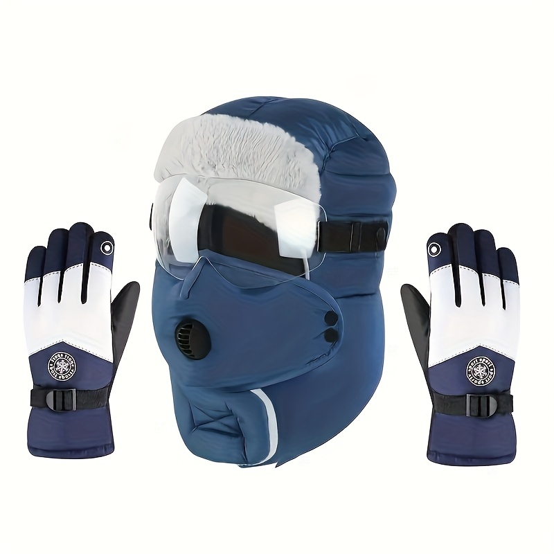 TEMU 2개 세트 겨울용 보온 방한 세트, 헤비듀티, 방풍, 모자, 귀마개, 마스크, 넥 게이터 올인원 보온 모자, 터치스크린 호환 보온 장갑, 추운 겨울, 크리스마스 및 추수감사절 선물용