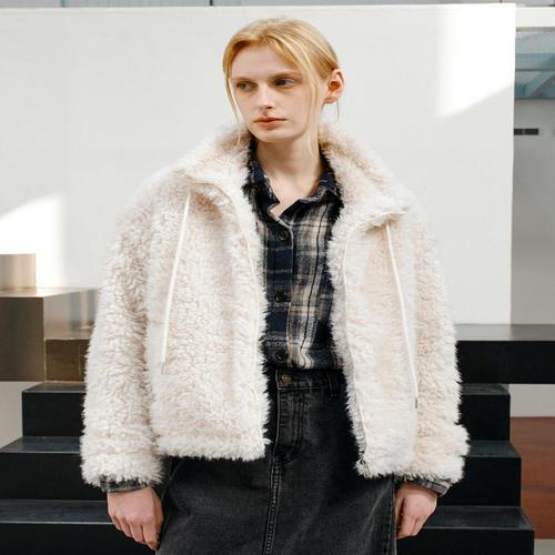 [나인식스뉴욕]하프넥 레더 포켓 믹스 양털 넥 스트링 집업 자켓 (NP4JK024L0)