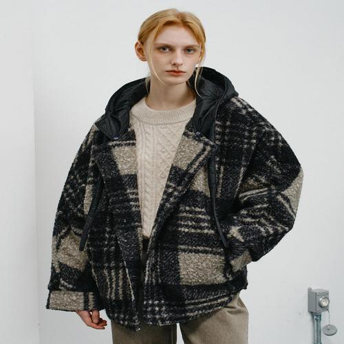 [나인식스뉴욕]패딩 후드 탈부착 부클 믹스 버튼 체크 자켓 (NP4JK023L0)