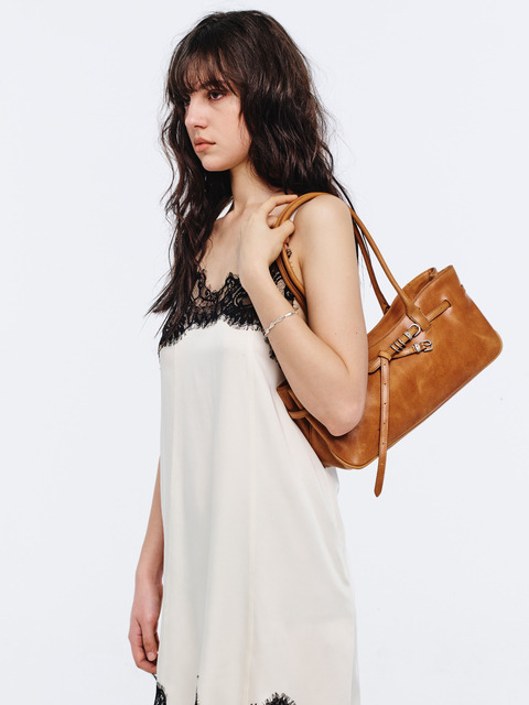 [마지셔우드] 그랜마 유즈드 숄더 백_새들 브라운 풀업