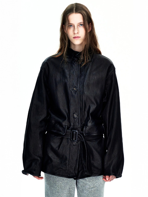[마지셔우드] WAVE WASHED LEATHER JACKET_black