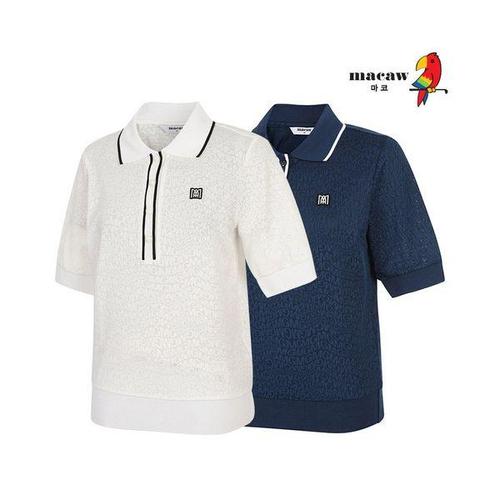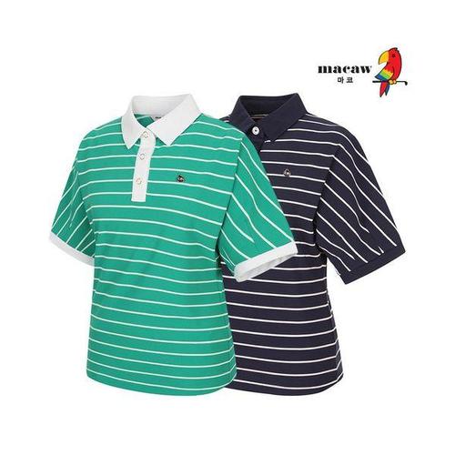 마코 (여성)라인 패턴 반집업 반팔 티셔츠_MMW2TH82