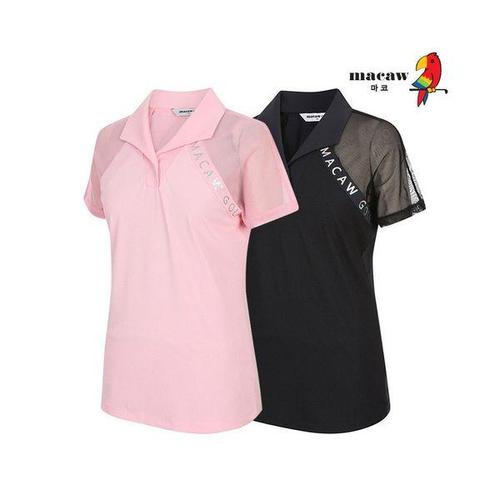 [마코](여성)시스루 배색 카라 반팔 티셔츠_MNW2TS63