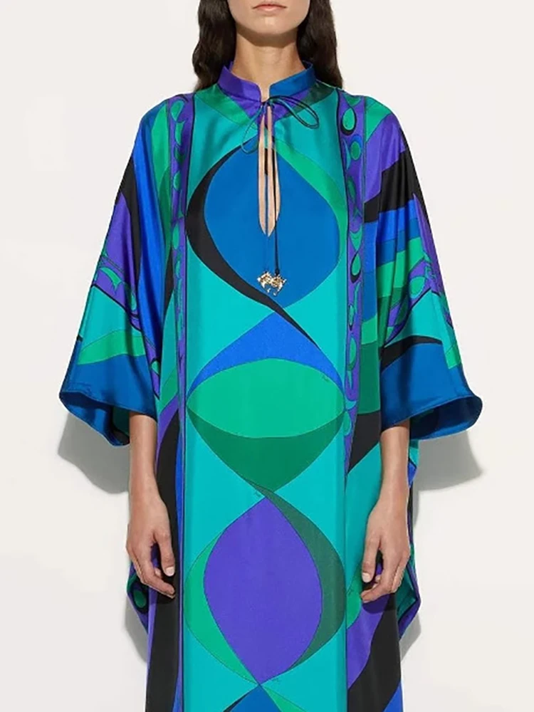 가을 세련된 트렌드 달콤한 캐주얼 시골 프린트 드레스 v 넥 Batwing 반팔 미디 드레스 휴일 출산 드레스