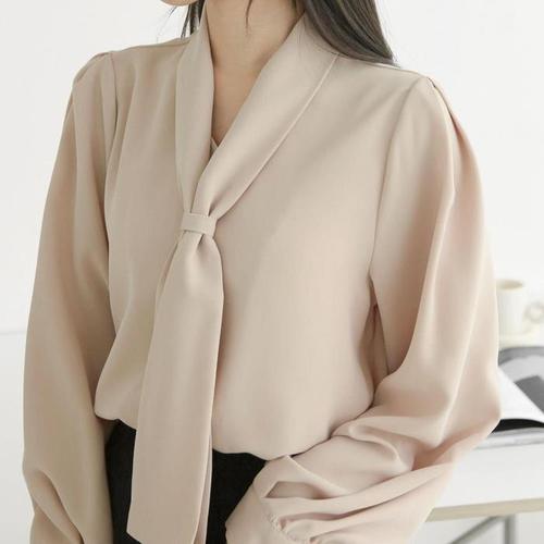[다잇템]여자 버튼 가을상견례룩 마후라 벌룬 블라우스 (18986777A)