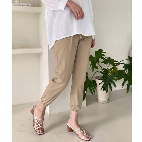 [진마니아]린넨 베이지 여름 허리밴딩 배기 마바지