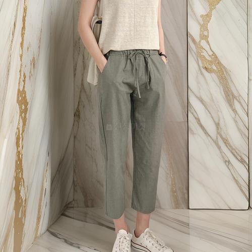 [에이치플러스몰]여성 린넨 바지 여름 여자 마 8부 스판 배기 팬츠